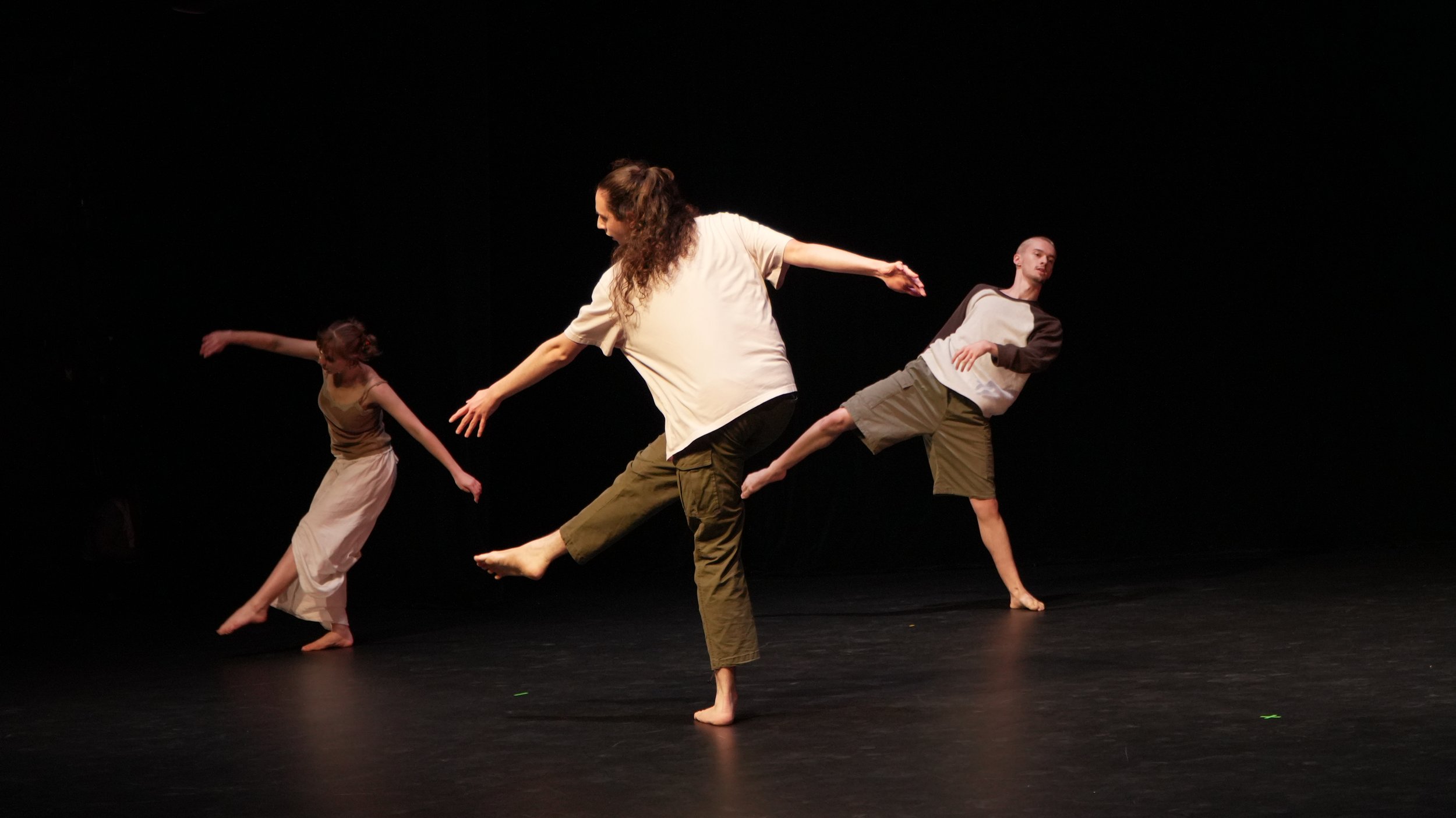 The piece investigates how energy builds within the body and becomes palpable to other bodies within the space. Together, Carrel and his collaborators Elena Redman and Ethan Schwab, tumbled through a silent space. While only lasting roughly two and a half minutes, the piece packs a punch as the dancer’s weight is tossed into and around each other.